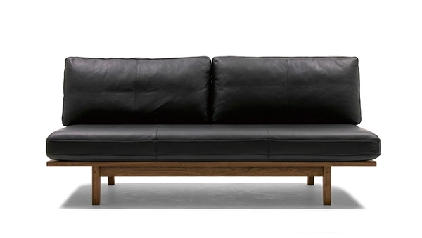 マスターウォール(アカセ木工)が誇る極めて高品質なウォールナット材と、上質な座り心地を想像させるふくよかなクッションが組み合わさったソファ。