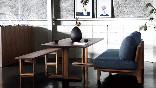 フレーム底面がすのこ状になっており、通気性も配慮されています。背面まで徹底的にこだわった木目が美しく、リビングダイニングの主役となります。