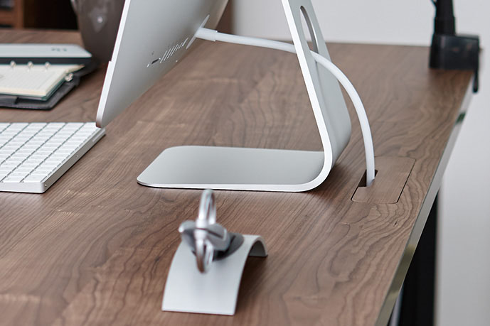 同柄で一体感のあるフラットな配線フタは、作業の邪魔にならず、机上面からの配線を簡単に行えます。