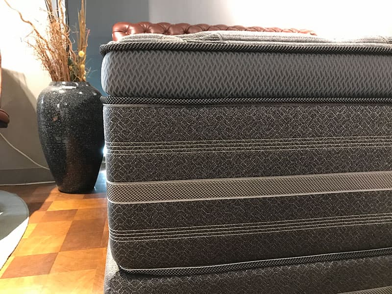 よりボリューム感のあるクッション材を抱き込むために進化したピロートップの形。究極のピロートップとしてシモンズではリュクスシリーズの各モデルにのみ採用されています。
