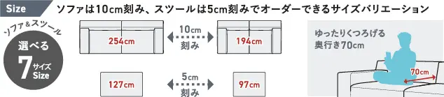 ・ソファ2540:幅254cm×奥行100cm×高さ65cm(座面高さ38cm)