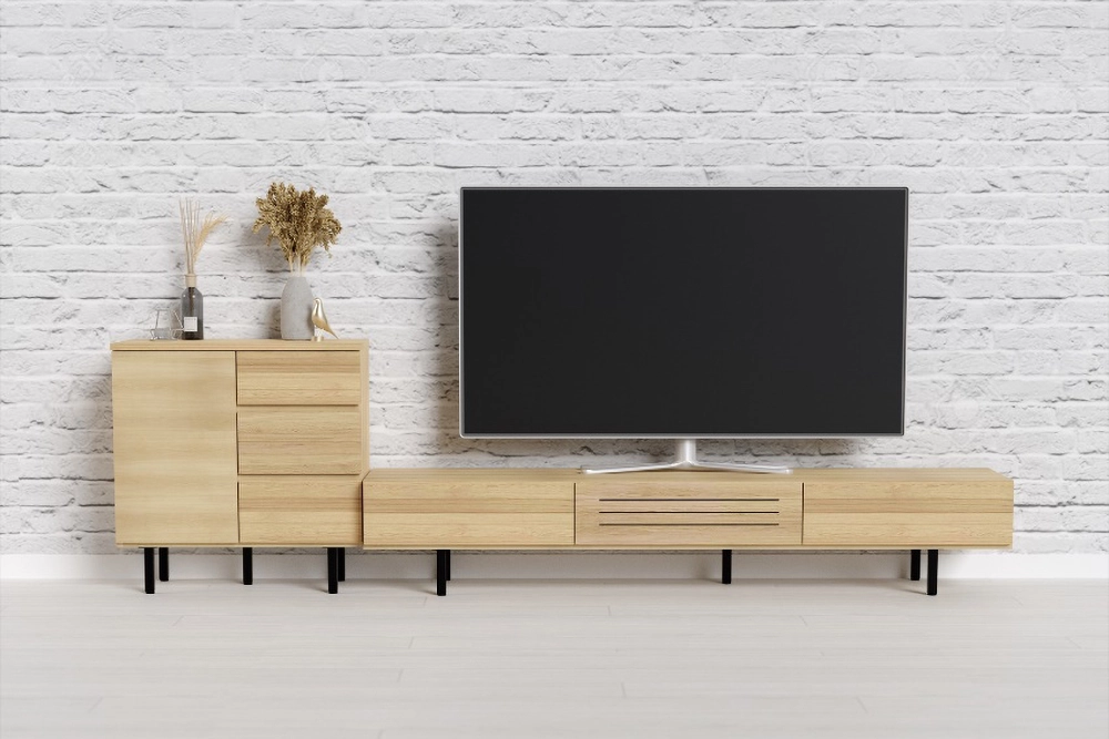 北米産のホワイトオーク材を無塗装に近い質感に仕上げたリビングボード。素材感を生かしながらもウレタン塗装にすることで高い質感と機能性を両立します。サイドボードとローボードの組合せでお部屋をトータルコーディネートできます。お部屋の雰囲気に合わせて脚のデザインをお選びいただけます。