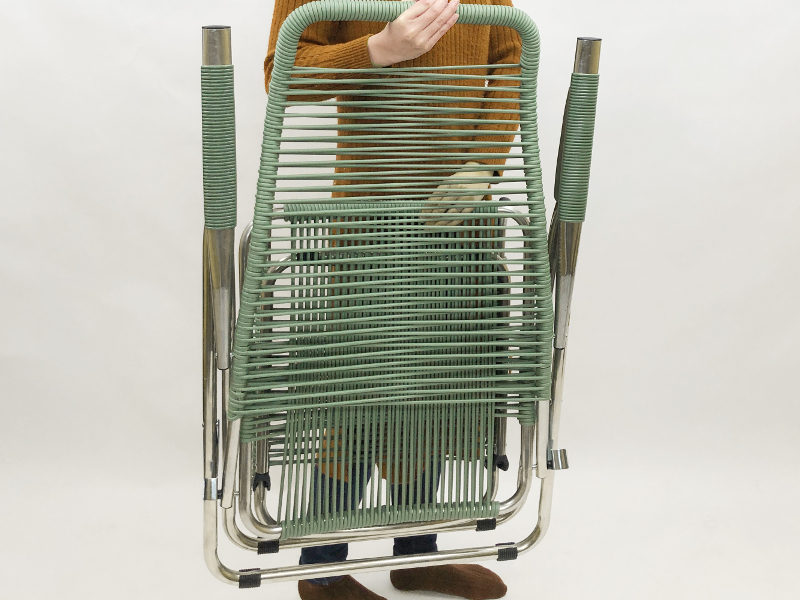 このリクライニングチェアはイタリアでもっとも愛されている料理へのオマージュとして、シートを構成しているPVCバンドから“スパゲッティ“と名づけられました。