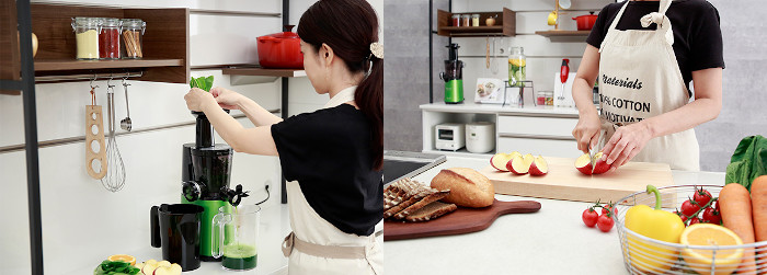 デザイン家電や調理器具は隠さず見せる収納に。よく使うものは見えるところある方が便利です。