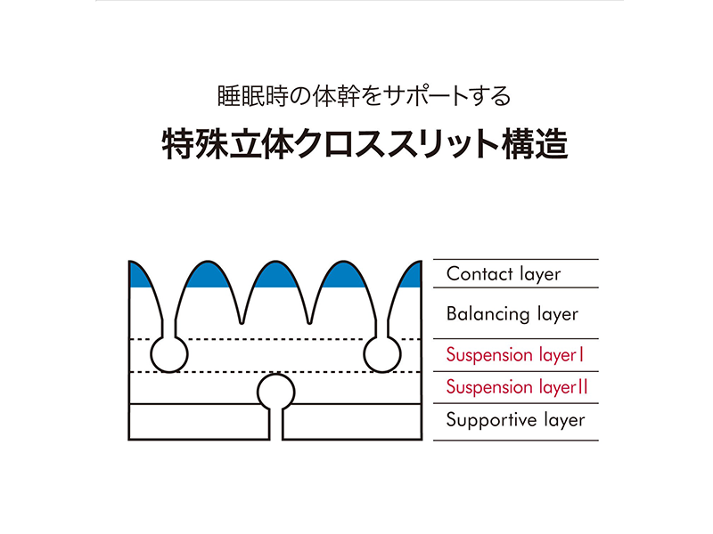 [エアー] は、体にかかる圧力を分散させる特殊立体構造で、質の高い眠りへと誘います。