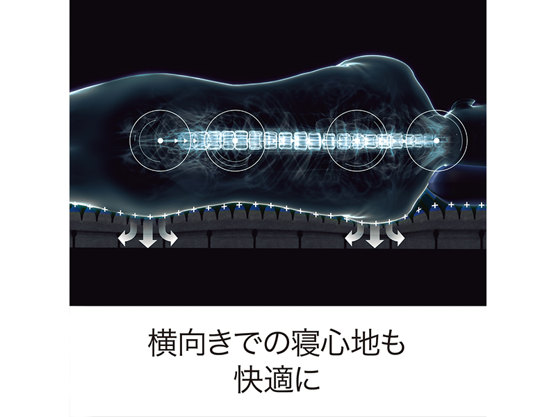 横向き、仰向け、どちらの寝姿勢でも肉体をバランスよく支える快適な睡眠環境を実現。明日の活力を求める人のコンディショニングをサポートします。