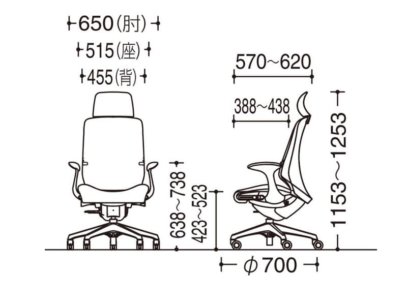 幅65cm×奥行70cm×高さ:(ノーマルキャスター)114.5~124.5cm/(ホローキャスター)115.3~125.3cm