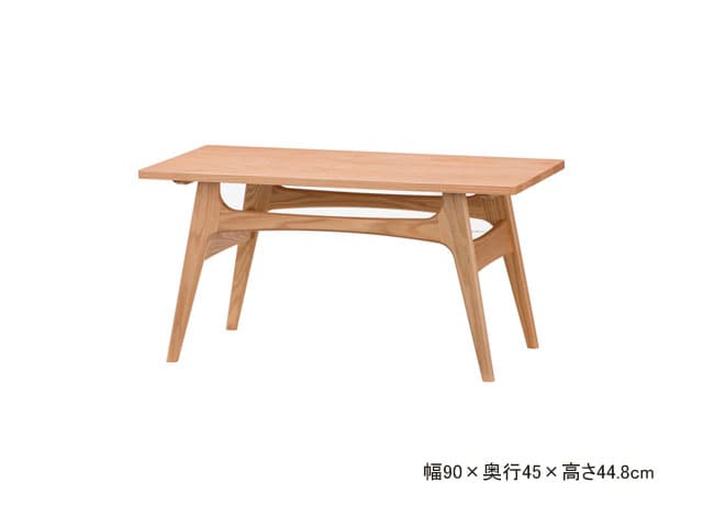コーヒーテーブルのサイズは、幅90cm(幅90×奥行45cm)と120cm(幅120×奥行50cm)の2タイプ。
