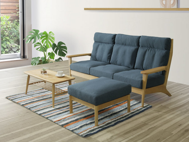 アルダー材天然木を使用したフレームにファブリッククッションを組み合わせた温かみを感じさせるソファ。