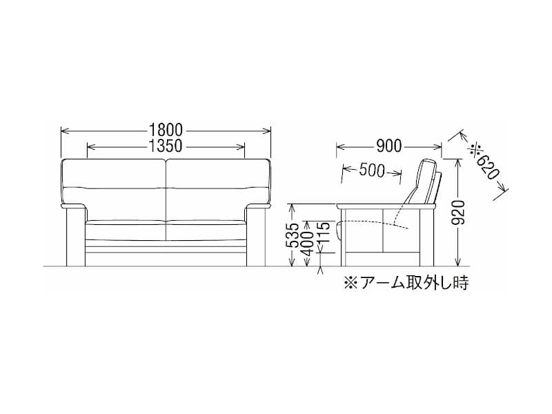ZU79 モデル 2人掛椅子ロング(2Pソファ)/ 肘平板タイプ