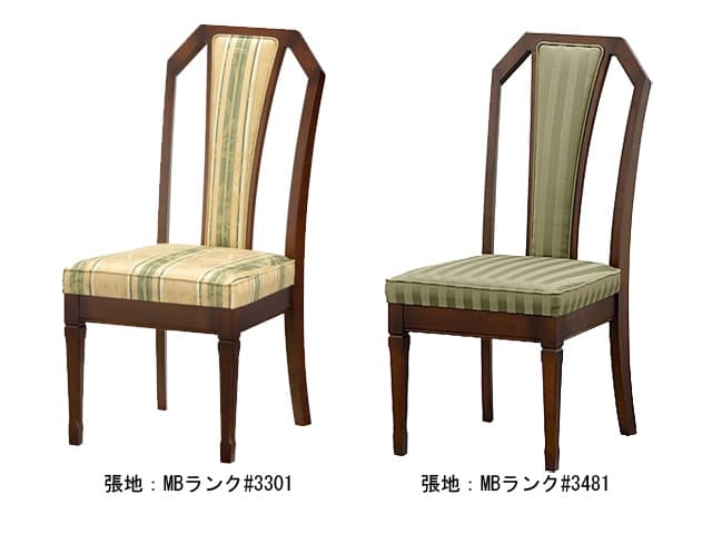 トラッド柄の定番であるストライプや花柄など豊富なテイストのファブリックや、落ち着きのあるレザーから選べるチェアです。