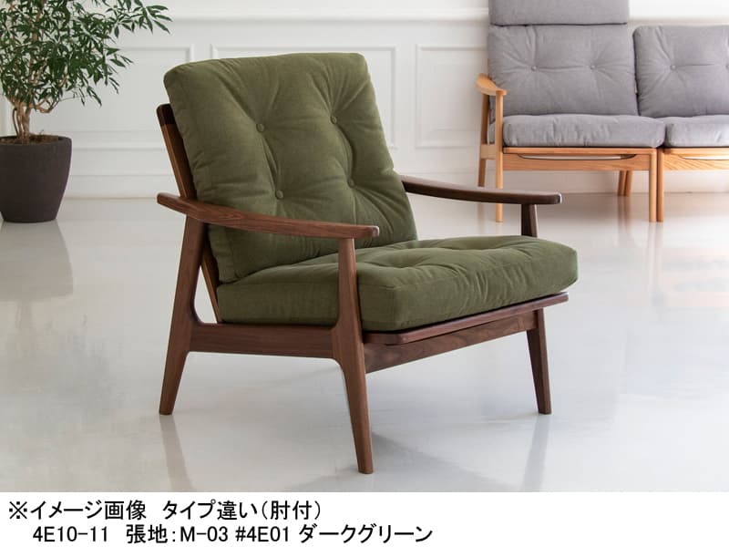 ウォルナットフレームチェア 4E10-□ ワイドハイバックシングルシート(片肘)