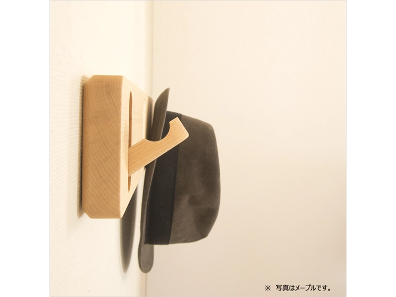 木のやさしい素材感が感じられる、まるで壁に板を張り付けたようなウォールフック。