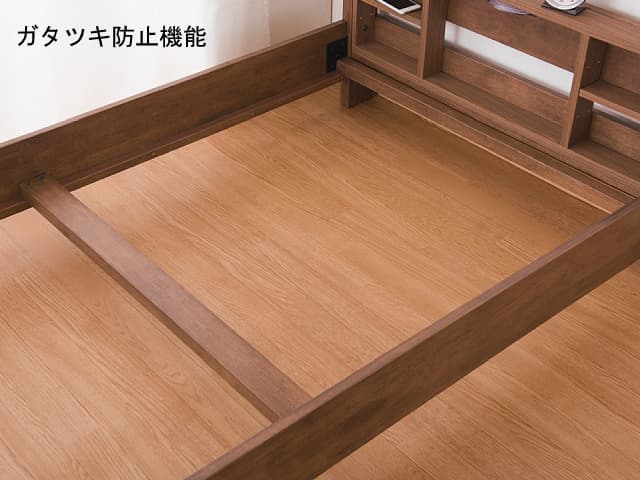 床板下にはガタツキ防止のため、サイドボードの中心部と両端を天然木の丈夫な棒で固定しています。