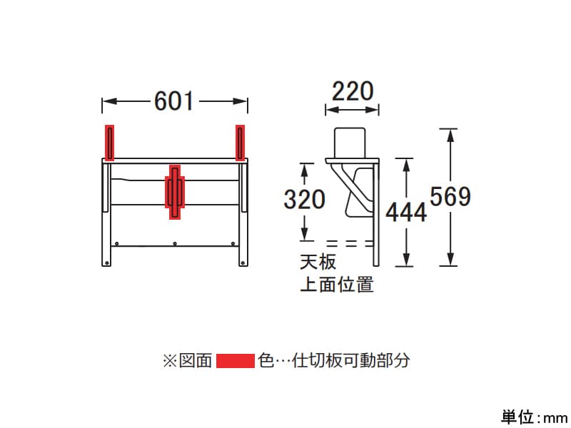 ※バックパネルにデスクライトを取り付けた場合、取り付けた側に仕切板はつけれません。