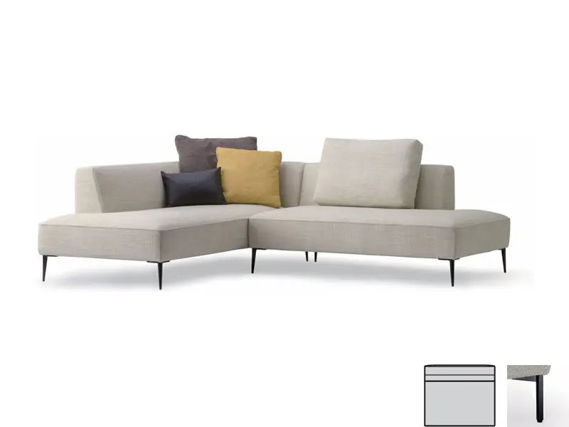 スチールの筐体にすることでスタイリッシュなデザインと強度を確保した背クッションは、通常のソファと同じエラスティックベルトとウレタンフォームの構造にすることで、見た目からは想像できない快適な座り心地を実現。更に背面には滑り止めを、トップにフェザーを敷き詰めることでじんわりと沈み込むような贅沢な感触に座るとうっとり。