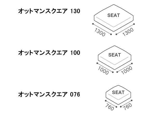 ソファの組み合わせに大胆な変化を付けることが出来る扇形状のオットマン、オットマンファンシェイプ 45° の紹介ページです。