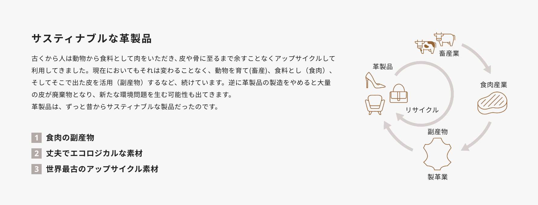 「マイクロピグメント仕上げ(LF RANK)」は、発色と耐光性を兼ね備えたマイクロピグメント(粒子の細かい顔料)を用いることで、 アニリン仕上げのような透明感を実現しています。さらに原皮は、ドイツ産のきめ細やかで柔らかなトップ5%~10%をセレクト。また、「エコトリムレザー」を採用しているので、製造の際に使用するエネルギーを15%削減しています。天然の風合いを活かし、革本来の柔らかな手触りや風合いを感じていただけます。生前についたナチュラルマークと呼ばれるキズやシワを含めて経年の変化もお楽しみいただけます。