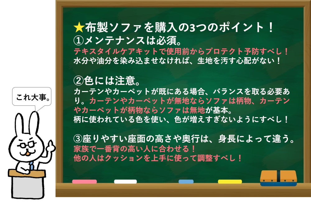 ファブリックソファを購入する際のポイント。