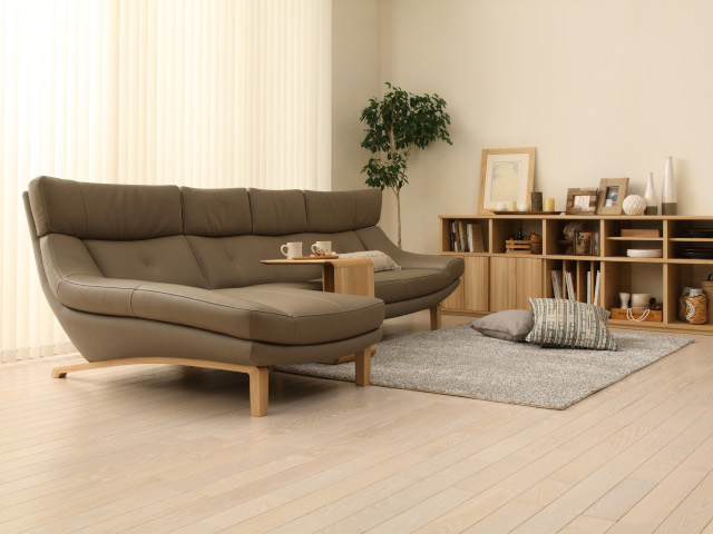 薄めに仕上げた座面と高さのあるスタイリッシュな脚部が絶妙なバランスでどの方向から眺めてもスッキリとしたフォルムが特徴のレオソファ。スッキリとした印象を与える高めの脚は、通常の掃除機やフロアモップでのお掃除も楽に行えます。自動お掃除ロボットの使用も可能です。