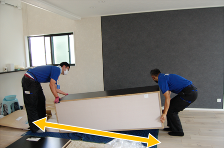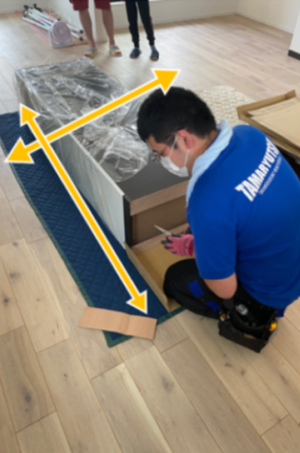 ※家具の配送時の搬入方法、養生の資材、養生方法などは各配送担当、配送する家具、天候など様々な条件によって異なります。予めご了承ください。