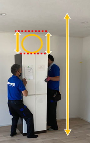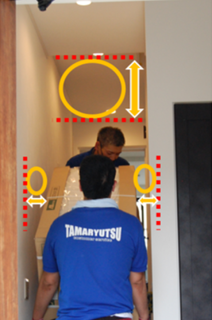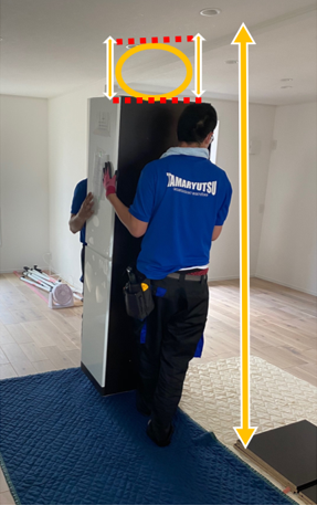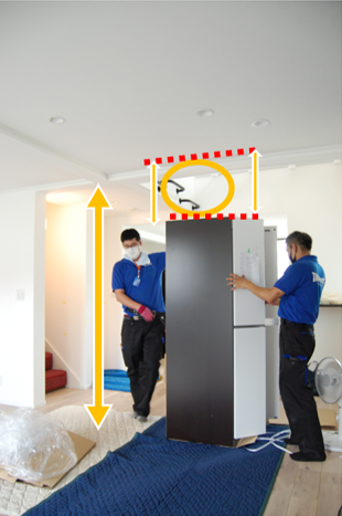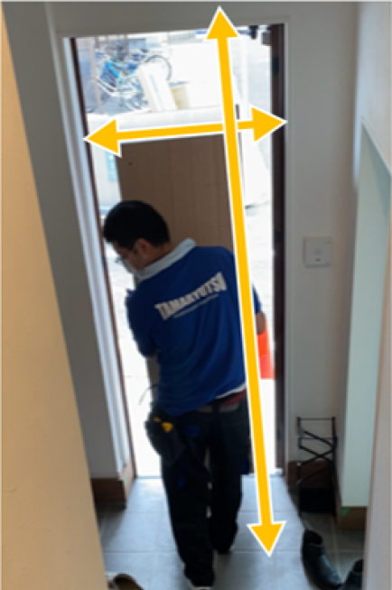 まずは玄関やドアの幅や高さ、玄関周りの天井高、設置するお部屋までの入り口ルートの幅や高さを調べておこう!ここから入らない場合には、吊るし上げ等の大技が必要になる場合がございます。