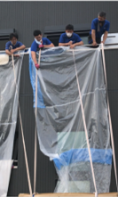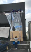 セッティングが済むや否や、自らも吊り上げ要員に加わるべく、Nさんが猛ダッシュで3階バルコニーへ向かう!