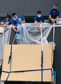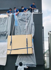 今回ご紹介をしている吊し上げによる搬入はかなり難易度の高いものとなり、事前にお客様からの詳細なご説明をお伺いしたり、場合によっては下見をするなどして、慎重に行なう搬入方法となります。