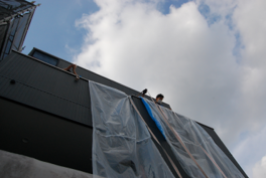 バルコニー下で、吊り上げる荷物の最終セッティング!
