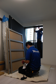 戻って2階のお部屋では、電動ソファの組み立て設置作業が着々と進んでいきます!