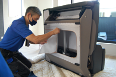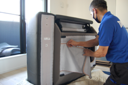 搬入した電動ソファの荷物を素早く荷ほどきしていくNさん!