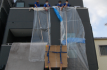 吊るし上げ搬入が可能かどうかは、搬入する窓のサイズやバルコニーの高さにも左右され、目隠し用などでバルコニー部分の壁や柵で背の高さが高くなっているバルコニーでは吊るし上げ搬入が困難になる場合がございます。