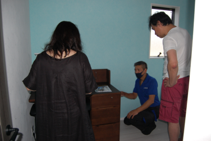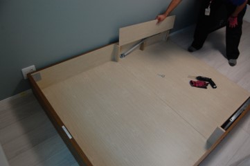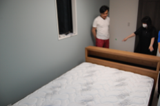 ベッドの組み立て設置も完了して、お客様の確認中。