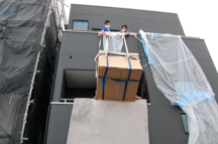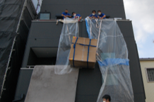 2階バルコニーから搬入するという大技中の大技を見せてくれた