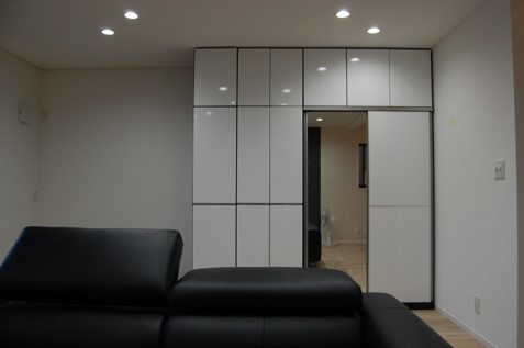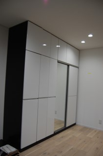 2階のリビングとなるお部屋のワードローブの最終調整。設置場所や