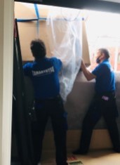 3階のお部屋のベッドを吊るし上げで見事に搬入したお部屋では、