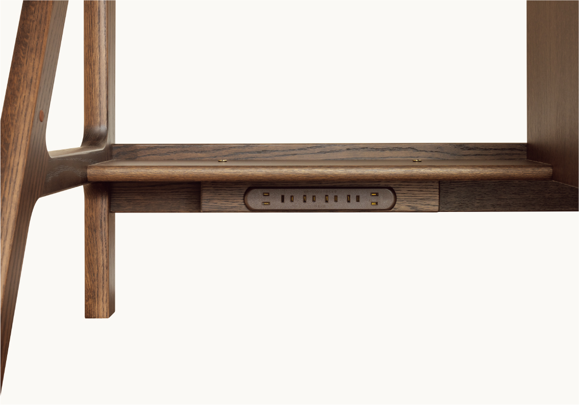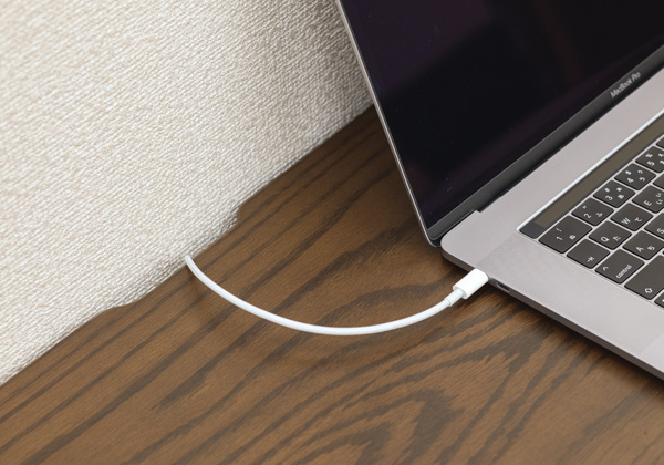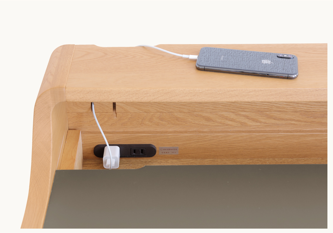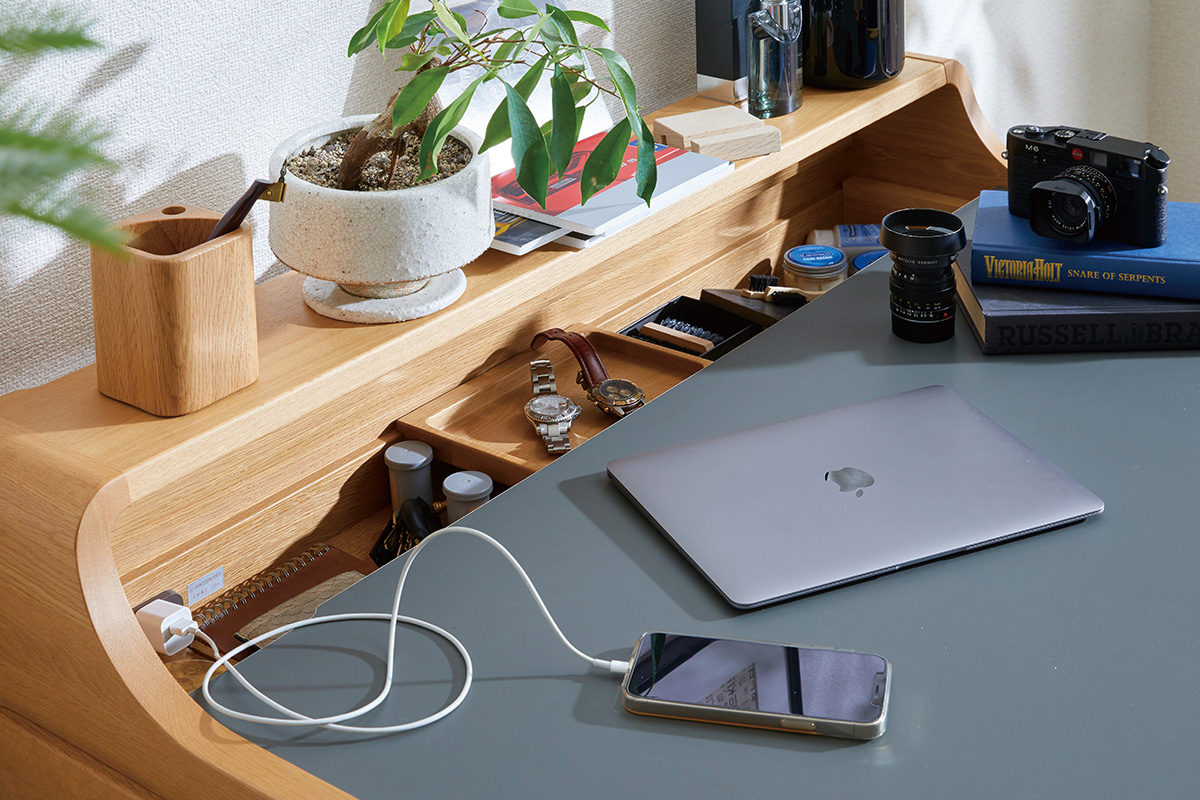余分な配線も隠せるのに加えて、USBなどのコードを引っかけて収納可能なケーブルホルダーも便利。大人から子供まで、使う人の遊び心をくすぐる機能が備わったデザイン性の高いデスクです。